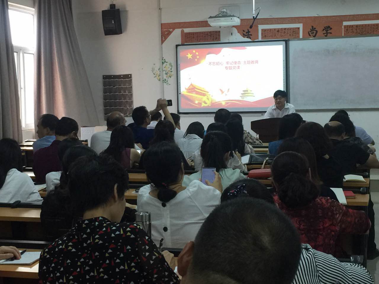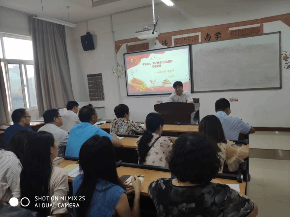 根据公司“不忘初心、牢记使命”主题教育工作总体部署,9月29日下午,党委副书记张坤书在一号教学楼407教室,为太阳成tyc122cc集团、马克思主义公司和外语公司的教师党员上“不忘初心、牢记使命”主题教育专题党课,会议由马克思主义公司党支部书记王世翔主持。