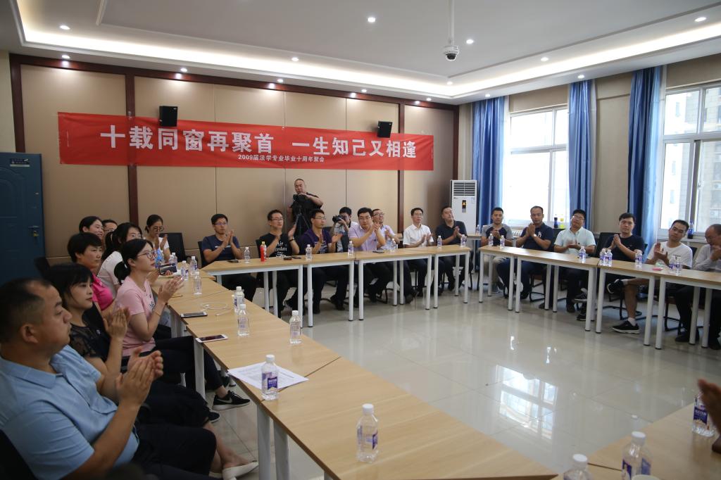 原法律系主任聂世民老师发言,他与员工们一起追忆了法学专业首届毕业生那段难忘的学习岁月,法学专业首届毕业生通过奋勇拼搏,刻苦学习,为法学专业开创了良好的学风,赢得了无数荣誉,毕业当年有28名毕业生考上了研究生,其中不乏中国政法大学、厦门大学、湖南大学、西南政法大学、西北政法大学等名校,考研率达到25%;并对同学们毕业后所取得的成就深感欣慰。