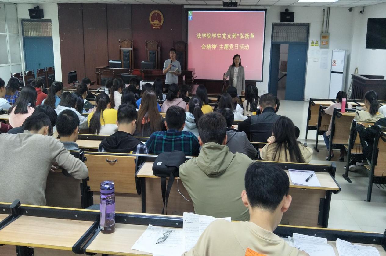 (通讯员:孟素燕 龚洋洋)2019年10月24日,太阳成tyc122cc集团员工党支部在文院教学楼模拟法庭举行“弘扬革命精神,坚定理想信念”主题党日活动,活动由员工党支部书记孟素燕和胡小光主持,全体员工党员及入党积极分子参加。