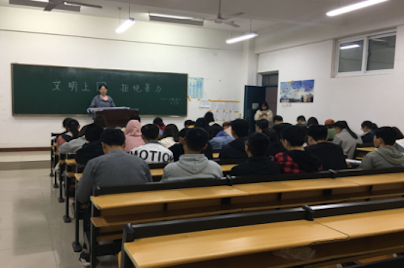 班会开始,宣传委员向同学们介绍了文明对一个礼仪之邦的重要性,进而将文明的领域延伸到个人隐私极易暴露的网络。紧接着,宣传委员向同学们讲述了近来发生的网络暴力实例,并阐述了网络键盘侠不当的言论会对当事人造成很大的心理与精神压力,并要求同学们设身处地的换位思考表明自己的感受。最后,宣传委员以几则文明上网的标语作为本次活动的结尾,呼吁同学们文明上网,打击网络暴力。