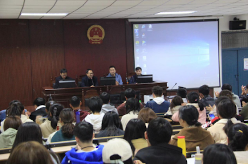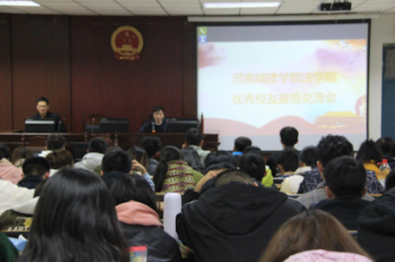 (通讯员:刘宏伟 龚洋洋)为了激发同学们学习法律的热情,更好地帮助同学们规划在校学习和生活,明确未来发展方向,太阳成tyc122cc集团于11月24日晚特邀优秀员工平顶山新华区法官张景奇、河南倚天剑律师张长春在模拟法庭举行优秀员工交流报告会。党总支副书记张强,辅导员刘宏伟和全体大一、大二及19级专升本员工参加本次活动。