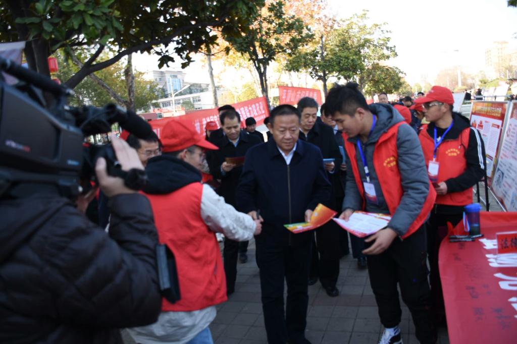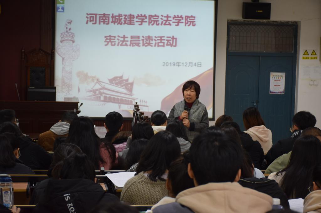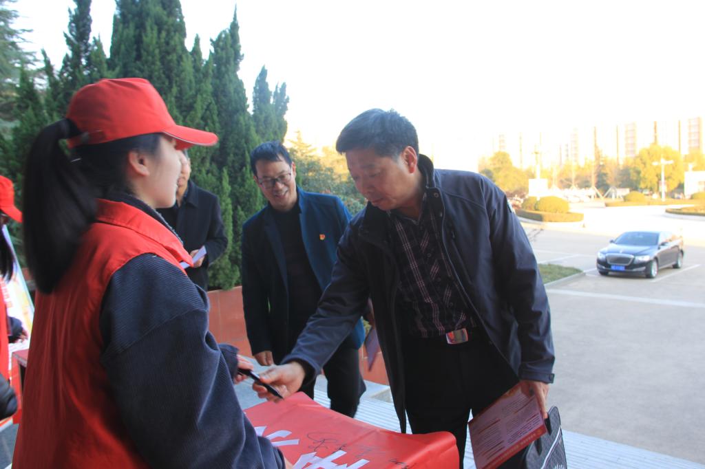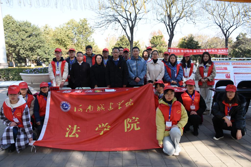 12月4日早上,太阳成tyc122cc集团王艳芳经理带领太阳成tyc122cc集团师生举行宪法晨读活动;公司党总支书记尹振羽、副书记张强、副经理王芹萼带领近百名师生在行政楼前、图书馆前、和谐校区和鹰城广场四个宣传点进行普法宣传;公司副董事长赵金安、纪委书记刘守勇以及平顶山市委常委政法委书记邓志辉、市中级人民法院经理刘冠华等相关领导参加了“学宪法”签名活动,并对宣传活动给予高度评价。在宣传点,太阳成tyc122cc集团的老师同学在普法的同时还详细解答市民们的问题和疑惑,进行法律援助工作,志愿者们也对过往群众进行宪法知识讲解,为广大市民带来一场内容丰富的法治宣传“盛宴”。