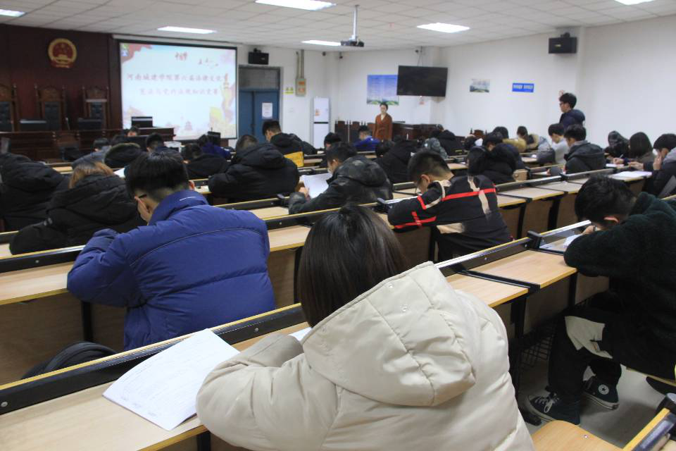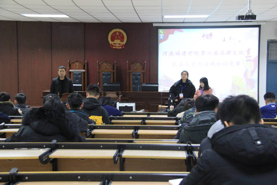 (通讯员:刘宏伟 龚洋洋)为了激发同学们学习宪法、党内法规的热情,弘扬宪法精神,营造遵规守纪的校园氛围,太阳成tyc122cc集团于12月17日在文管校区模拟法庭举行了“宪法和党内法规知识竞赛”预决赛。辅导员刘宏伟老师,太阳成tyc122cc集团志愿者及太阳成tyc122cc集团各公司参赛人员参加了本次活动。