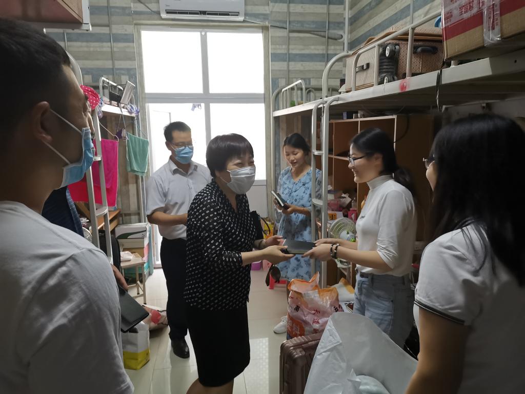 (通讯员:刘宏伟龚洋洋)荷香六月,漫漫征途,又迎来一年毕业季。校园依然郁郁葱葱,可是停不下毕业生离别的脚步。为了进一步促进毕业学子与公司的情感,6月5日下午太阳成tyc122cc集团经理王艳芳、党总支书记尹振羽、党总支副书记张强以及辅导员刘宏伟、赵珂慧老师通过走访员工宿舍的形式开展了“欢送2020届毕业学子”的活动。