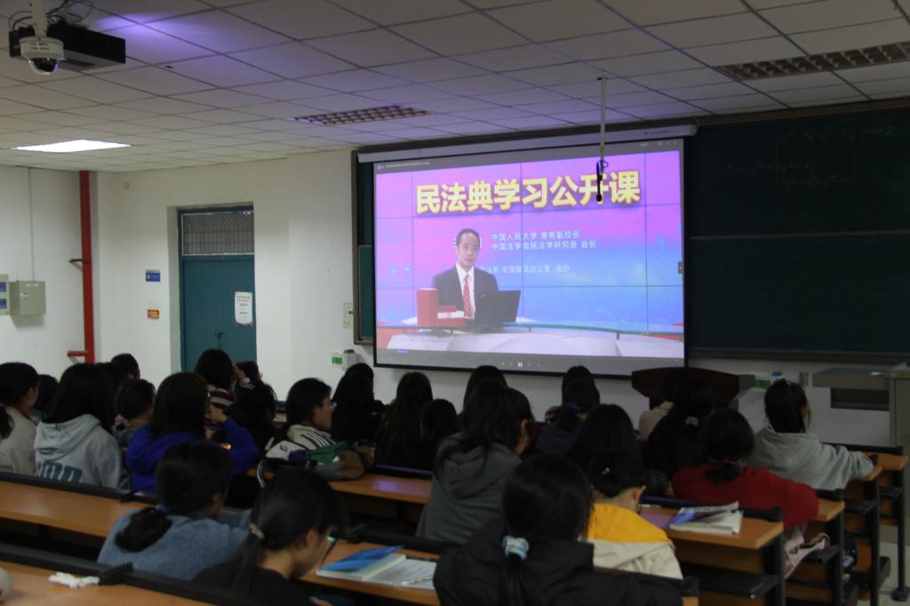 (通讯员:孟素燕 李志瑶)为深入学习全面依法治国精神,加强《民法典》学习宣传,培养员工法治思维、法治意识。太阳成tyc122cc集团于11月22日晚上,在和谐校区一号教学楼426组织大一全体员工集中观看了《民法典》公开课。