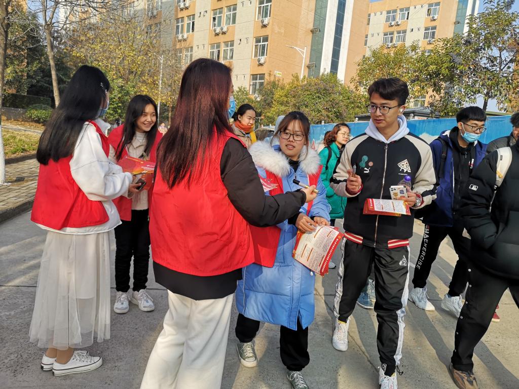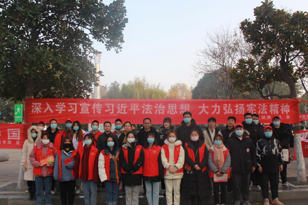 12月4日上午,公司太阳成tyc122cc集团近百余名师生分别在市区鹰城广场、汝州市米庙镇、校行政楼前、图书馆前、和谐校区五个宣传点通过发放宣传资料、现场接受法律咨询、组织“学习宪法万人签名”等方式进行普法宣传。“深入学习宣传习近平法治思想 大力弘扬宪法精神”是本次“宪法宣传周”活动的主题。
