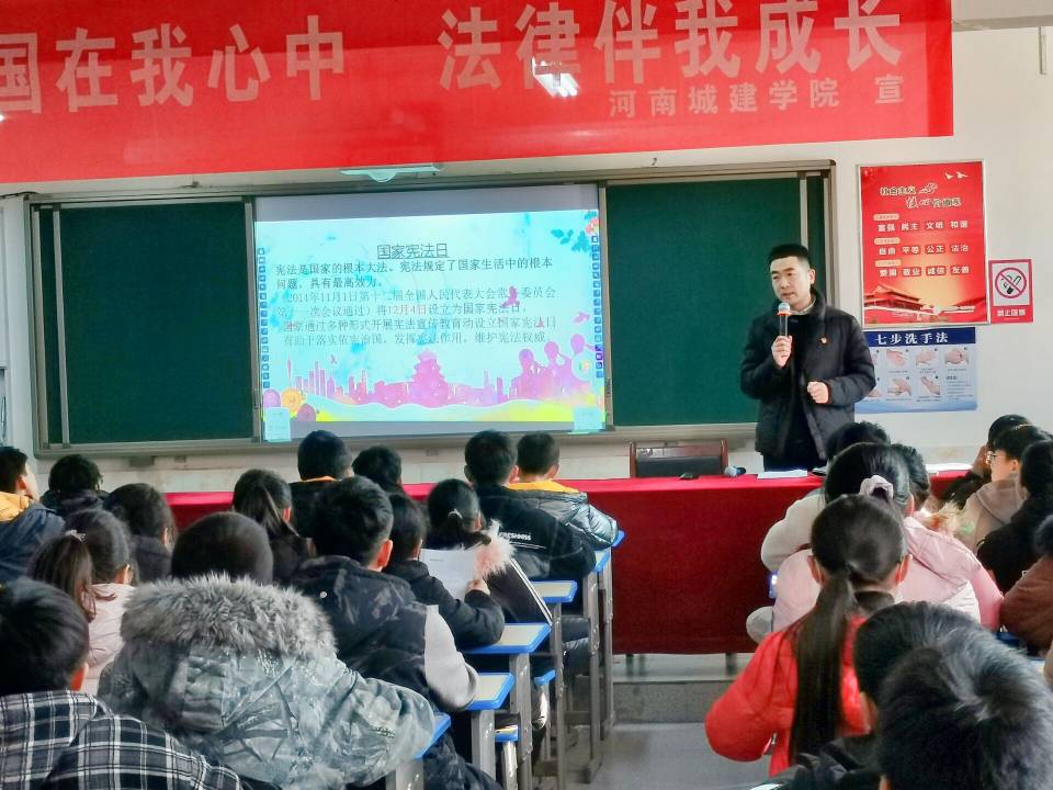 在汝州市米庙镇第一初级中学,公司刘宏伟老师一行10余名人带领中员工们齐声进行宪法晨读,营造浓厚的法律宣传氛围,刘宏伟还为中员工们上了一节精彩的宪法课,同学们听得津津有味,课后还进行了宪法小测试;在课程结束之后,公司师生还与中员工们交谈心得感悟,使他们在浓厚的宪法学习中受到熏陶、感染,增强了法治意识。
