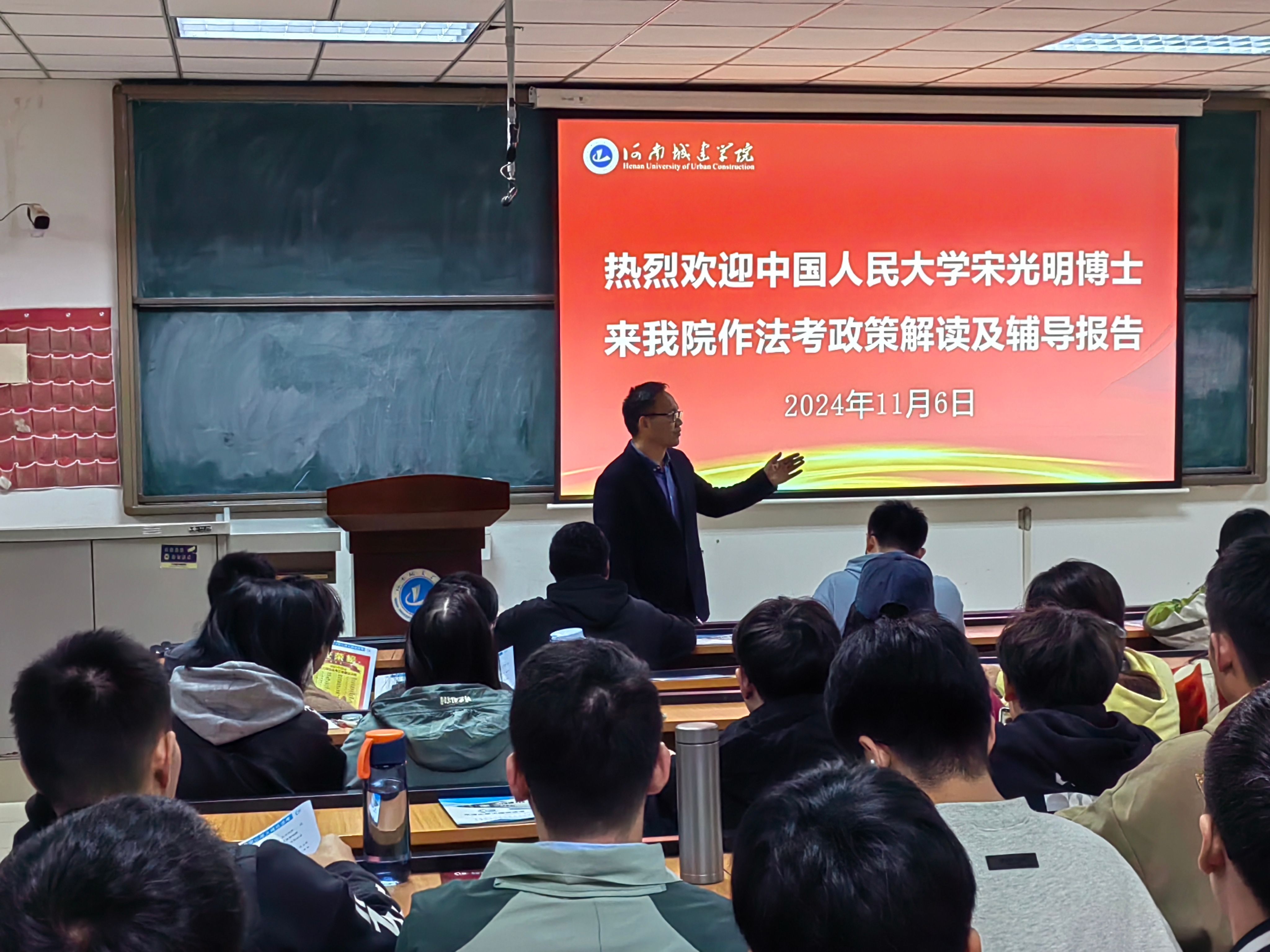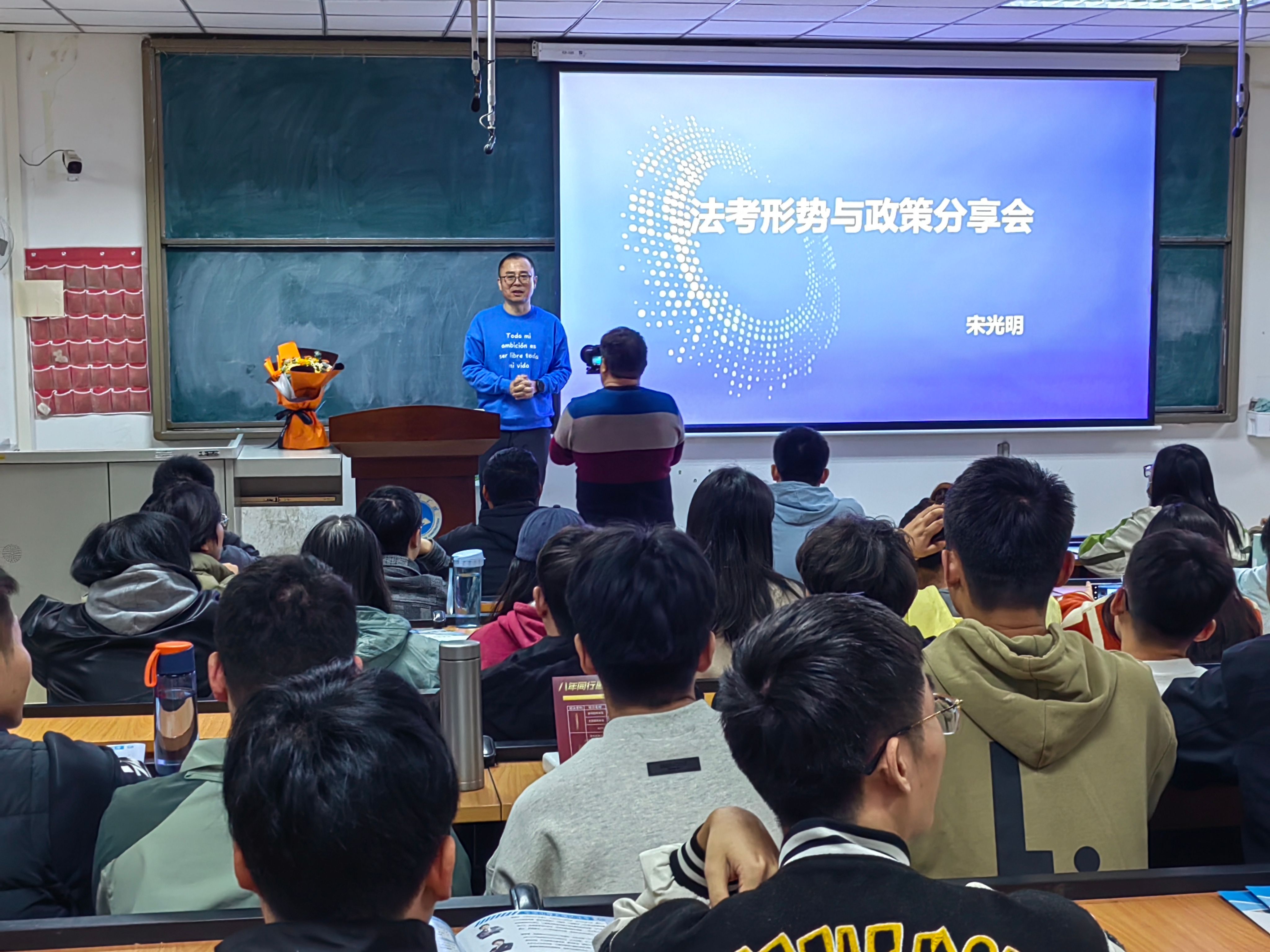 (通讯员 赵珂慧 章惠茹)11月6日晚上,中国人民大学法学博士宋光明博士在公司428多媒体教室,为200余名法学专业员工带来了一场关于法考形势与政策的分享会,旨在深入解读法考政策,提供备考策略,助力员工更好地备战法律职业资格考试。报告会由太阳成tyc122cc集团副经理张强主持。