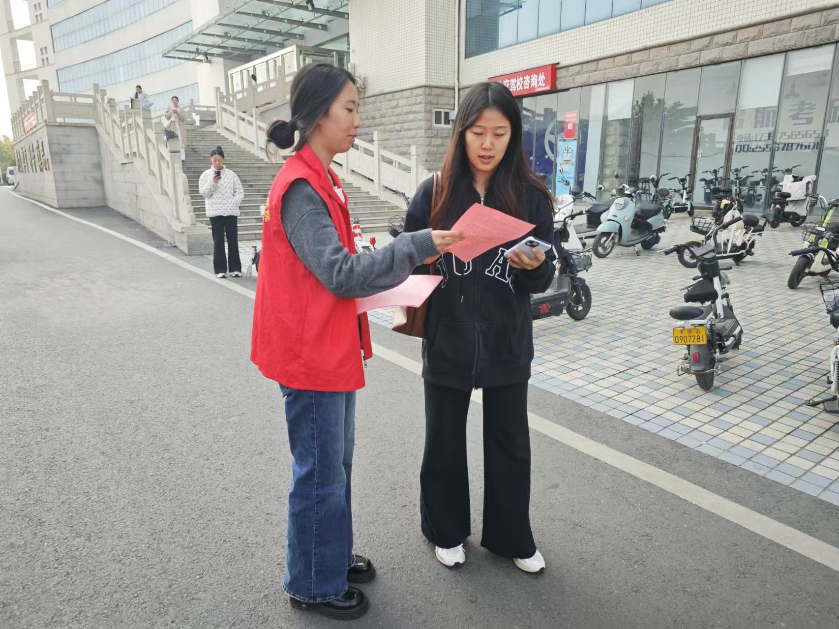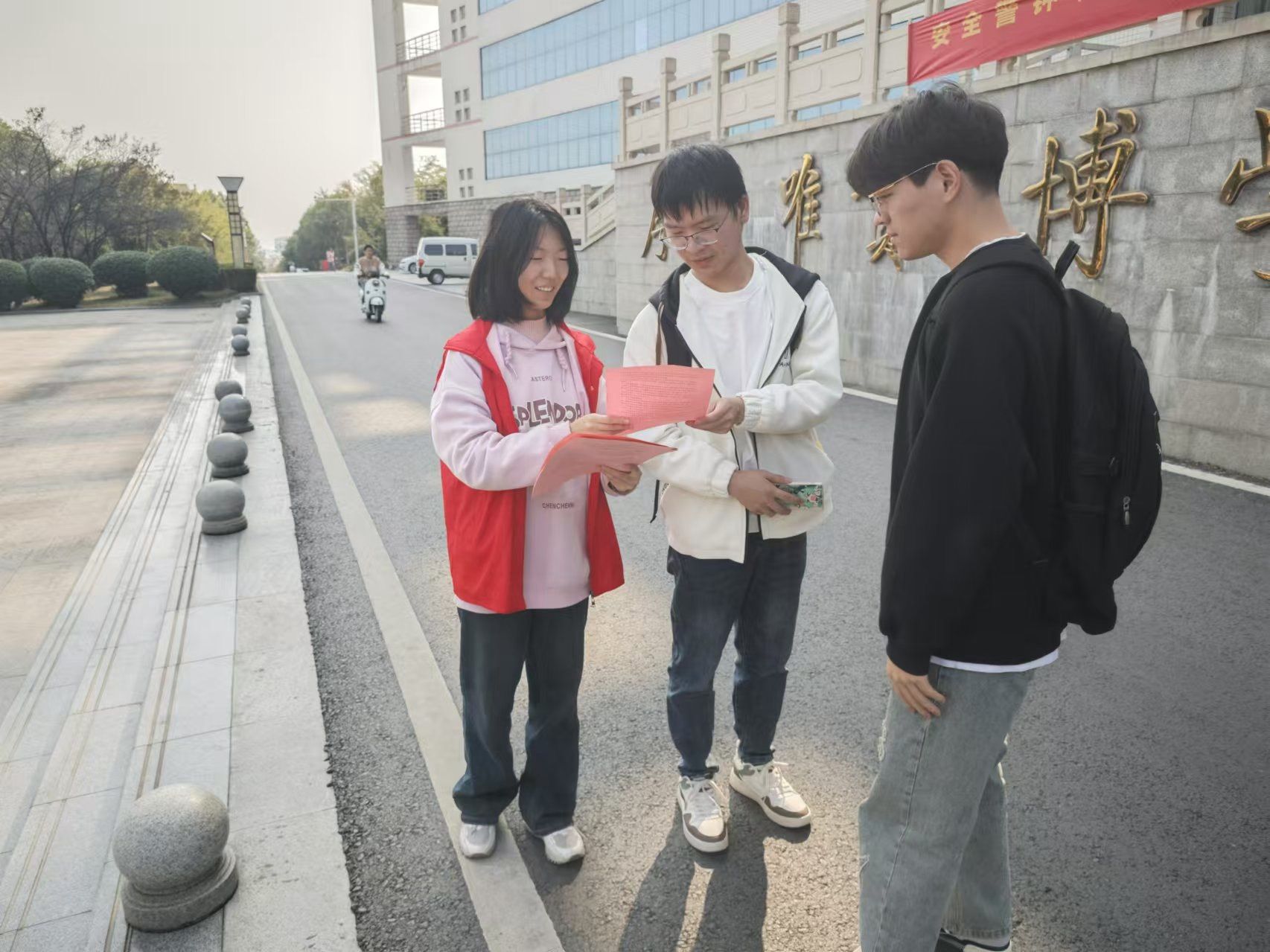 太阳成tyc122cc集团志愿者通过在校园内向师生发放消防安全知识宣传页,其内容涵盖了火灾预防、火灾应对和逃生技巧等多方面的内容;宣传页上还清晰地列举了校园内常见的火灾隐患,如违规使用电器、私拉乱接电线等行为的危险性,督促同学们重新审视自己在日常生活中的行为。