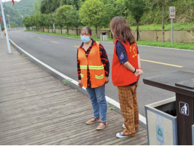图为队员向保洁阿姨询问旧址情况