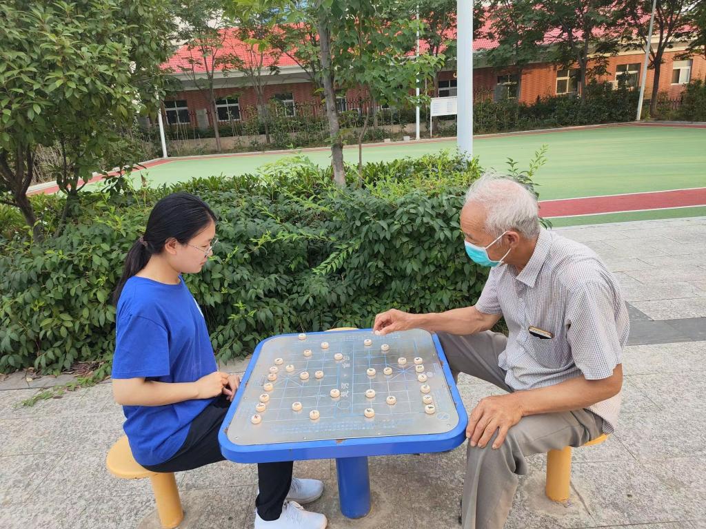 7月4日,实践队员在入户宣讲的同时,陪伴老人散步,下棋,进行娱乐活动,缓解老人内心的孤独,温暖老人的心灵。