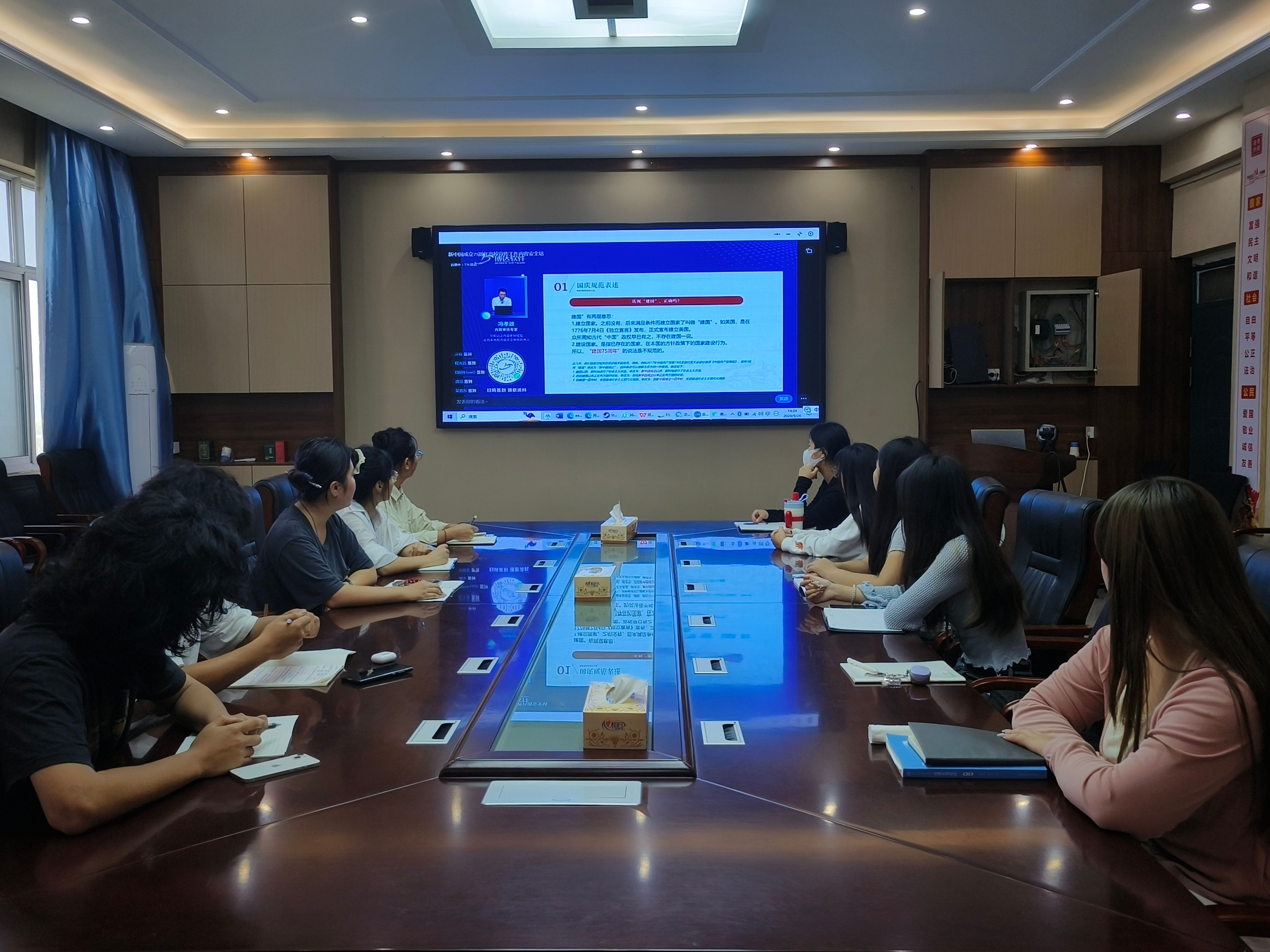 此次培训紧扣欢度国庆主题,内容丰富且极具实用性,主要内容包括国庆相关的新闻稿件需注意的语言格式、措辞,常见错误搭配等内容,会上还分享了部分高校的先进经验。员工们全神贯注地聆听,不时认真记录要点。