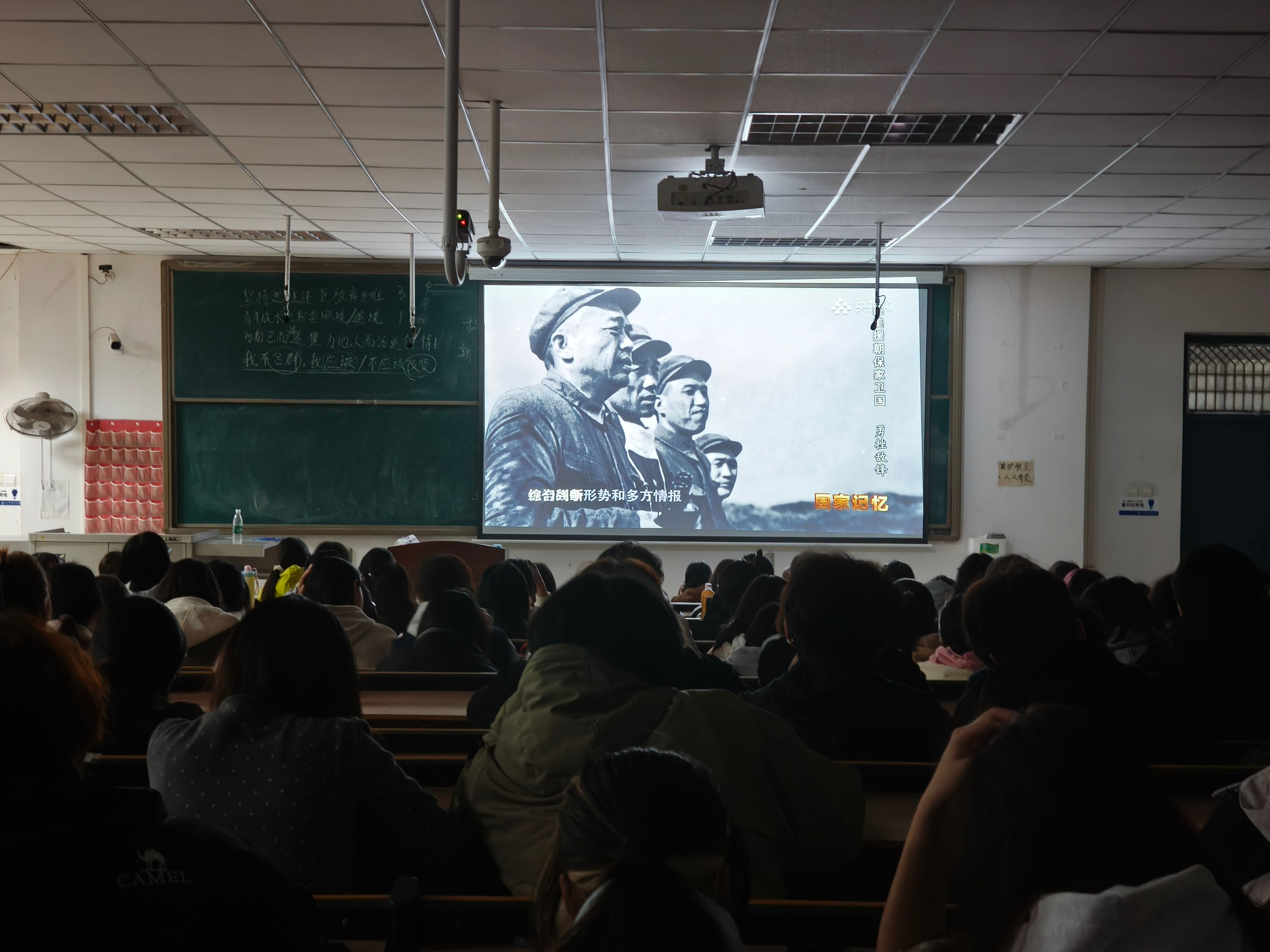 随后,师生共同观看抗美援朝纪录片。该片以宏阔的国际视角、鲜活的人物故事,再现了志愿军以弱胜强的战略智慧与血性胆魄。当镜头定格在“冰雕连”战士冻僵仍保持战斗姿态的画面时,现场不少同学热泪盈眶。部分同学表示:“书本上的文字此刻变成了直击心灵的震撼,让我真正懂得‘哪有什么岁月静好,不过是有人替你负重前行’。”