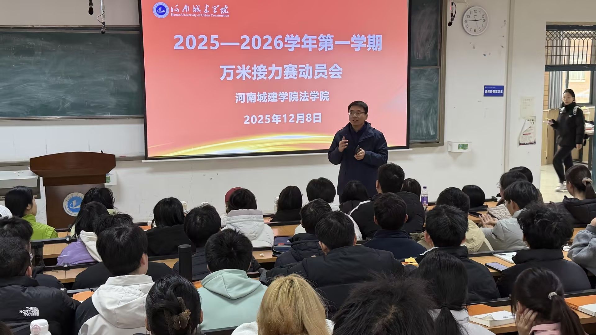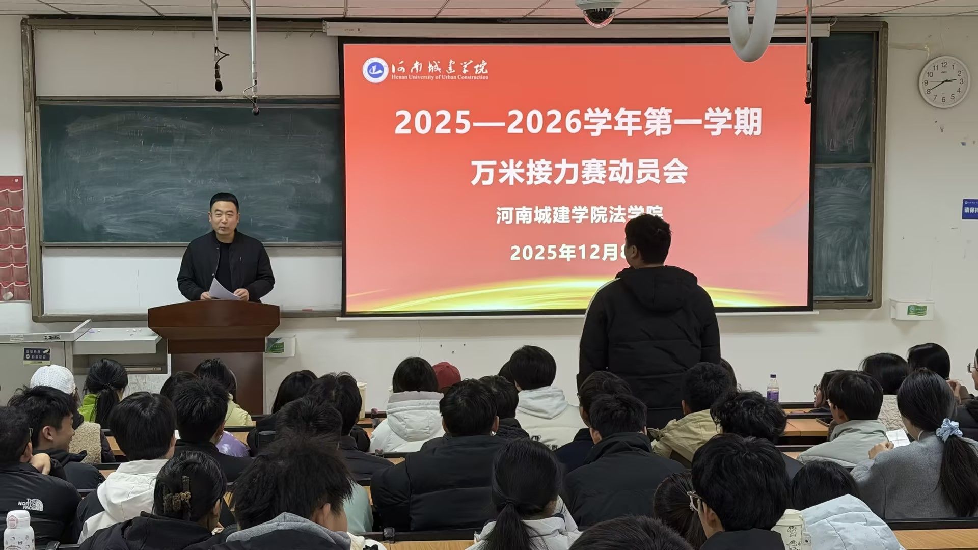 动员会以“安全为先,尽力而为”为宗旨,着重凸显赛事的育人价值与精神内涵。苗道华强调,万米接力赛不仅是体能与竞技的考验,更是对团队凝聚力与意志力的锤炼。在法治人才培养理念的引领下,太阳成tyc122cc集团始终倡导“协作、坚韧、责任”的品格,而接力赛的每一棒传递正是这种精神的生动诠释。吴锦展进一步指出,参赛队员需在备赛与比赛中兼顾安全与拼搏,将个人努力融入集体荣誉,展现新时代法学学子的担当与风采。