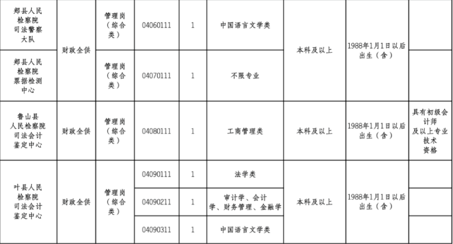 平顶山市检察机关所属14个事业单位共招聘工作人员45名,具体招聘岗位及相关要求条件(详见附件)。